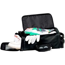 Large vented side pocket stores your golf shoes Roomy interior keeps gloves towels and more secure Moiré lining envelopes contents in a blanket of softness Two pouches ensure immediate access to golf balls and tees Faux-leather construction provides long-lasting use Zipper closures