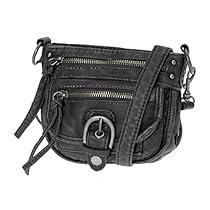 Up the style factor this season with this charming cross-body bag with washed finish. Multi-pocket design with flap and zippers. Adjustable strap. Dimensions 7 inches by 6.